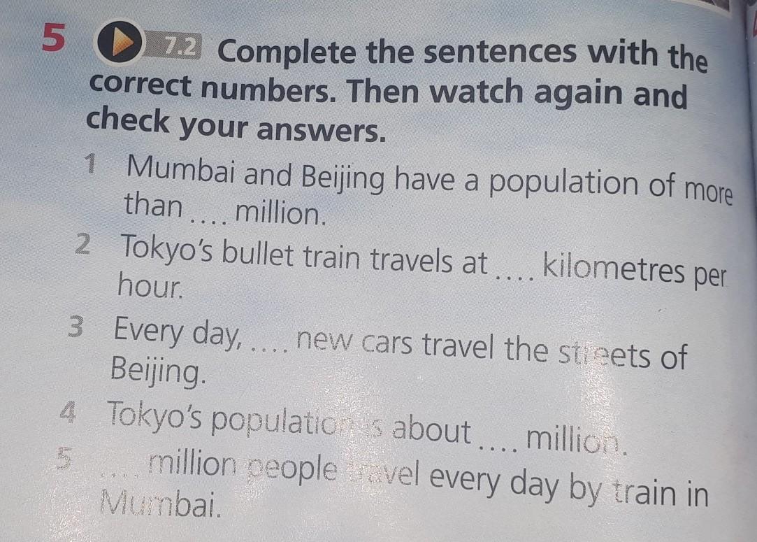 2) Tokyo's bullet train travels at 300 (three hundred) kilometres per hour.