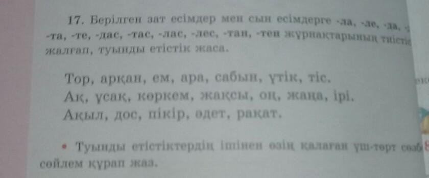 17. Берілген зат есімдер мен сын есімдерге -ла, -ле, -да, -