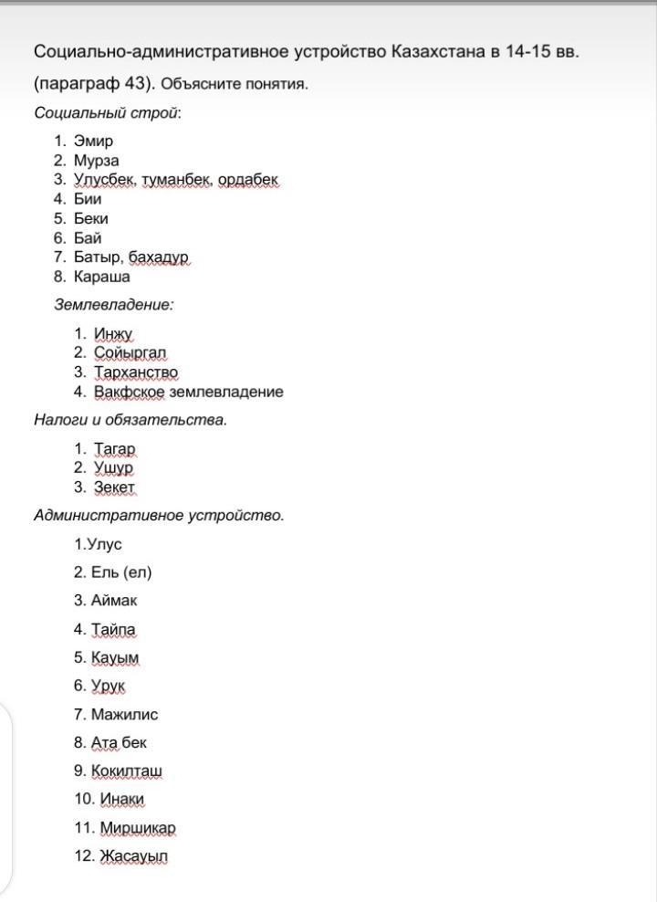 Начался исторический процесс формирования единой народности и ее государственности. На начальном этапе этого сложного периода в истории Казахстана произошел распад монгольских улусов, что привело к обособлению в этом регионе нескольких государств — Ак Орды, Могулистана, Ханства Абулхаира, Ногайской Орды, Западно-Сибирского ханства.