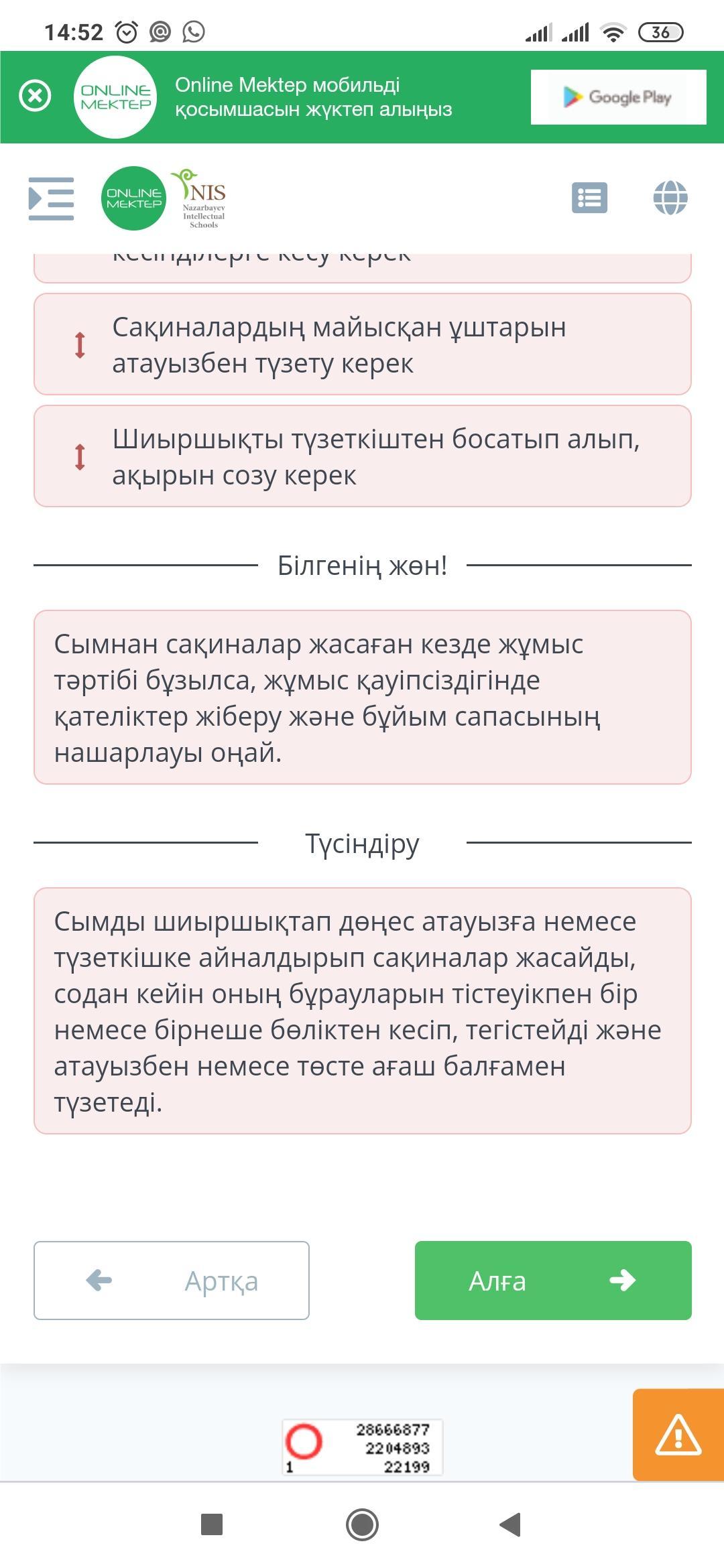 Сымнан жасалған сақиналарды жасайтын әрекеттердің дұрыс тәртібін анықта.