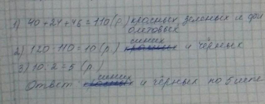 Черных 5 ручек, красных 40, в сумме их 40+5=45