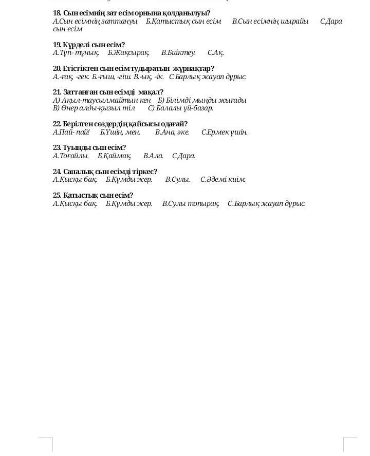 18 Сын есімнің зат есім орнына қолданылуы ? АСын есімнің заттануы БҚатыстық сын есім сын есім