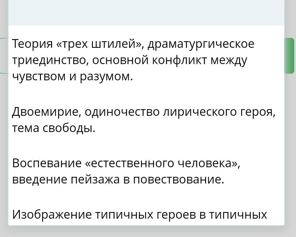 Основные черты классицизма- двоемирие, одиночество лирического героя, тема свободы.