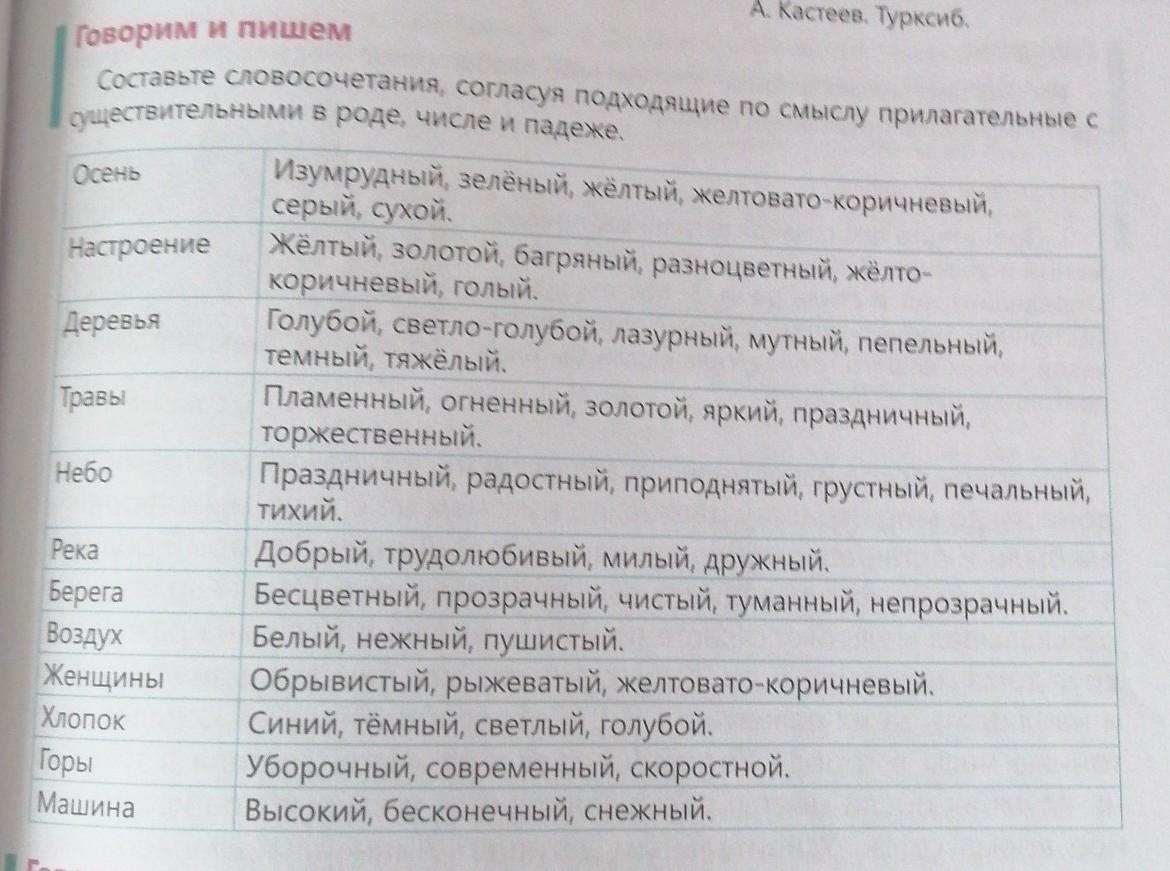 составьте словосочетания, согласия подходящие по смыслу прилагательные с