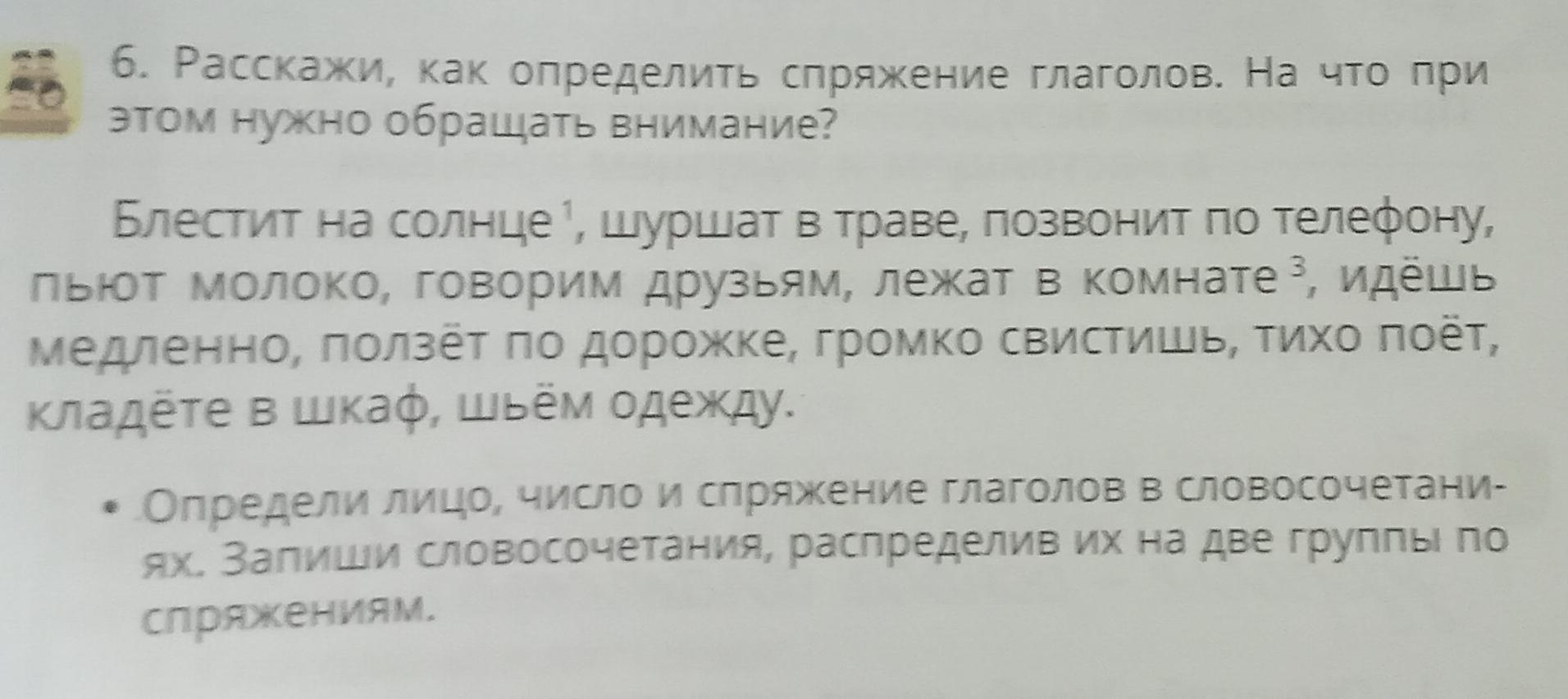 2 спряжение блестит на солнце, шуршат в траве, позвонит по телефону, говорим друзьям, лежат в комнате, громко свистишь