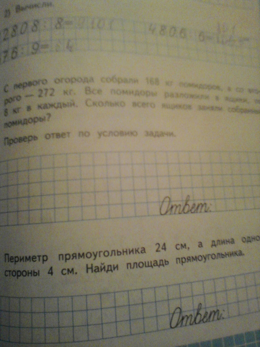 С первого огорода собрали 168 кг помидоров, а со второго-272 кг. Все помидоры разложили в ящики, по 8 кг в каждый. Сколько всего ящиков заняли собранные помидоры?
