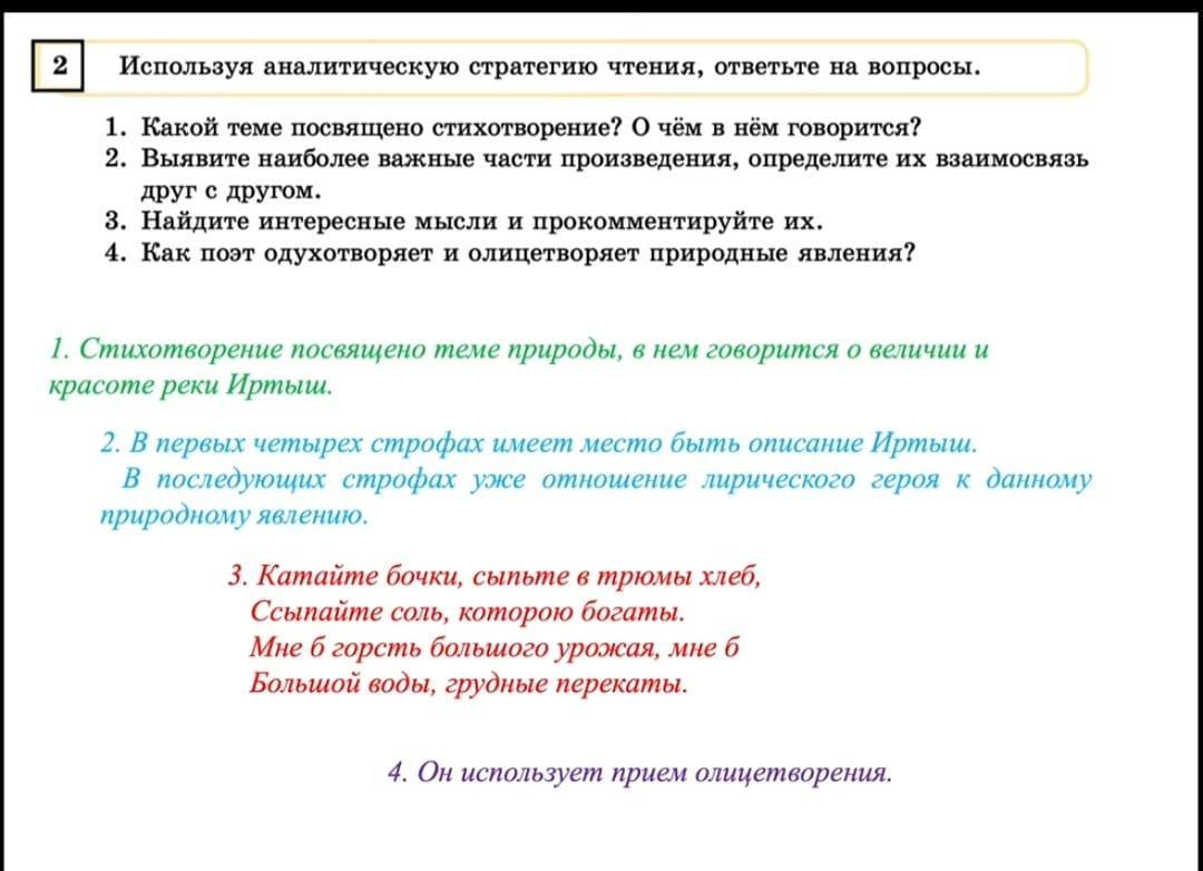 используя аналитическую стратегию чтения ответьте на вопросы иртыш