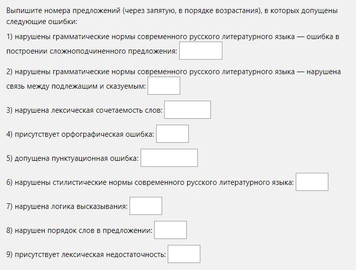 1 столбец - номер ошибки, 2 столбец - номера предложений.