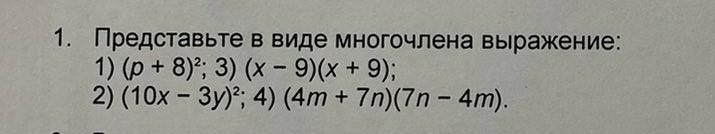 1) (p+8)^2=p^2+16p+64; (x-9)(x+9)=x^2-81