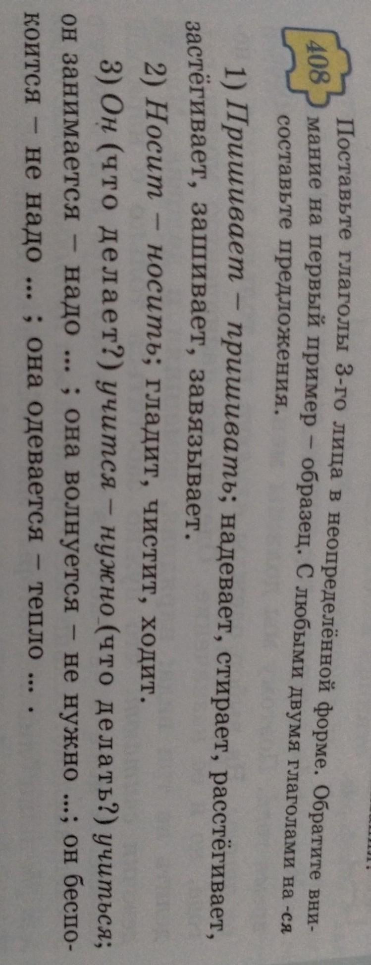 1) пришивает- пришивать, надевает- надевать, стирает- стирать, расстёгивает- расстегивать, застегивает- застегивать, зашивает- зашивать, завязывает- завязывать.
