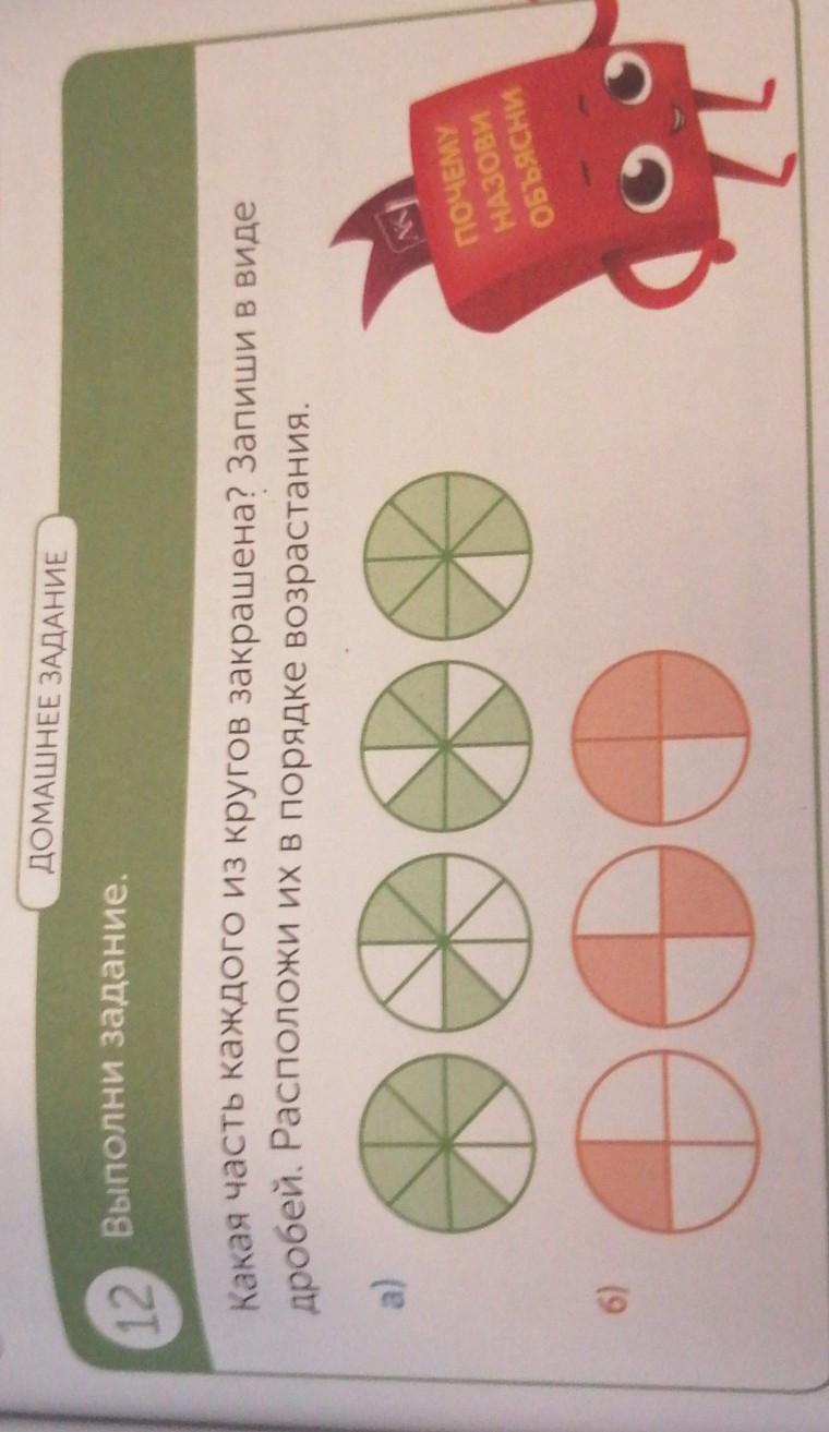 Какая часть каждого из кругов закрашена? Запиши в виде дробей. Расположи их в порядке возрастания.
