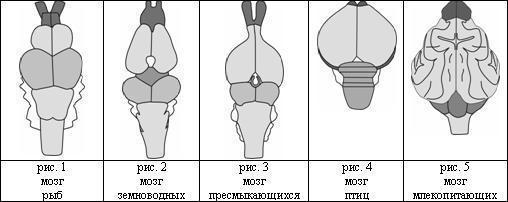 5.Найди рисунок, на котором представлен мозг млекопитающего: