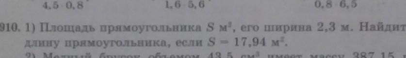 910. 1) Площадь прямоугольника 8 м, его ширина 2,3 м. Найдите