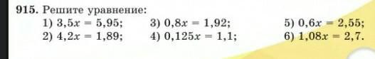 4)0,125х=1,1 5)0,6х=2,55 6)1,08х=2,7
