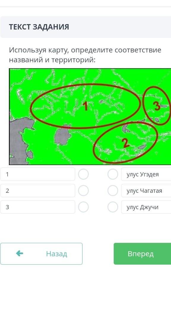 используй карту определите соответствия названий и территории улус угэдея улус чагатая улус джучи
