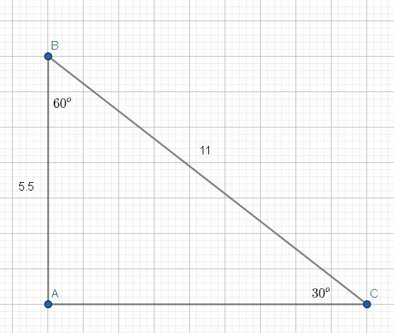 По теореме 30 градусов прямоугольного треугольника — AB = 11/2 => AB = 5.5 см.
