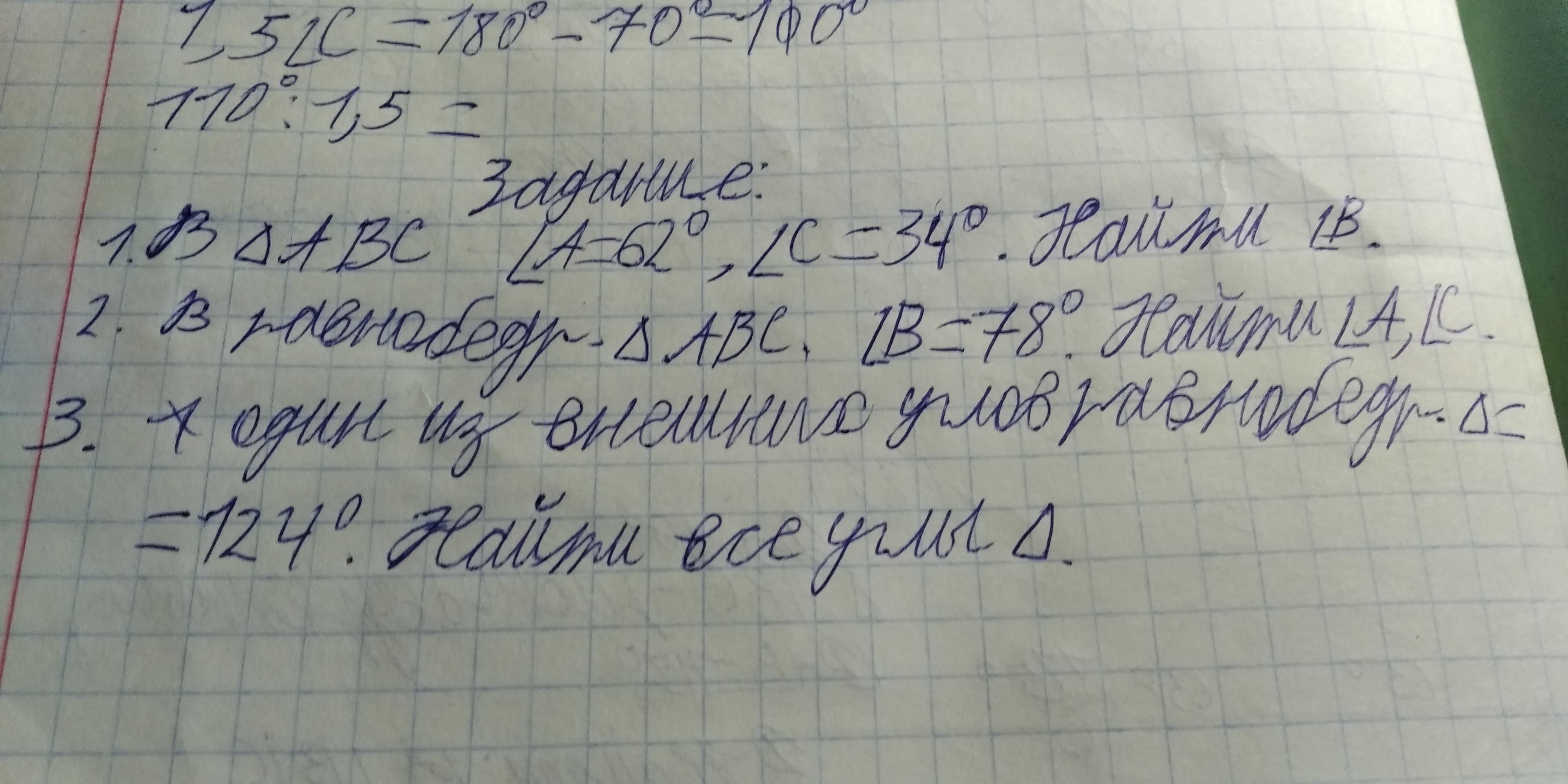 1)В треугольнике ABC Угол A=62градуса угол С=34 грдуса, наути угол В