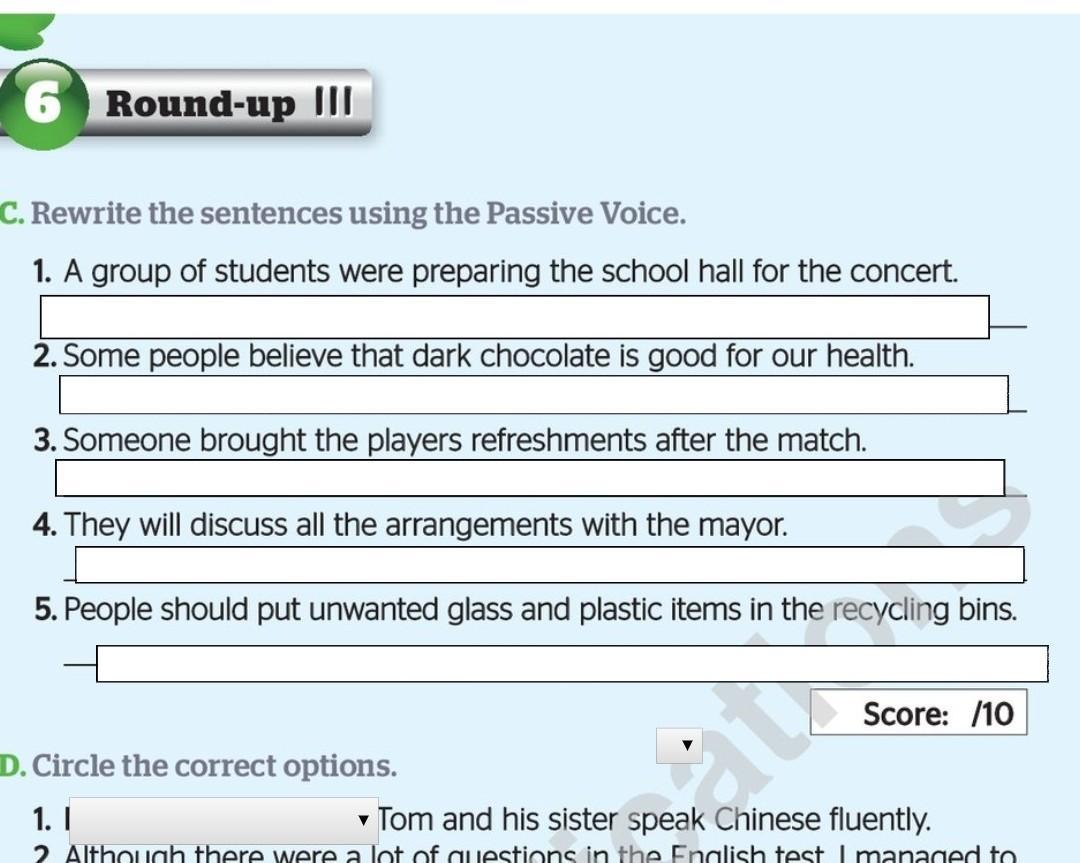 Unwanted glass and plastic should be put in the recycling bins (by people)