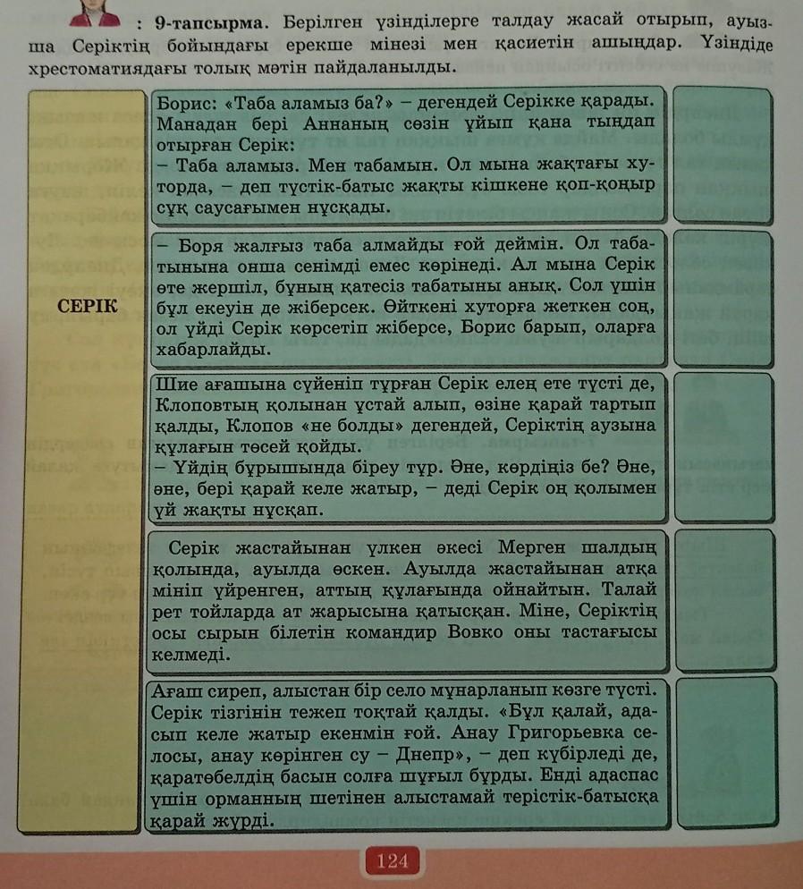 Серік өзіне -өзі сенімді, қырағы, өте сақ жігіт. Ат құлағында ойнайтын шабандоздығы да бар.