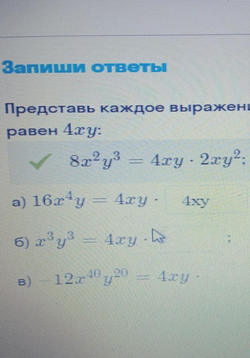 представь каждое выражение в виде произведения двух множителей один из которых равен 4 x y 16 x 4 степени игрек равно 4 икс игрек умножить