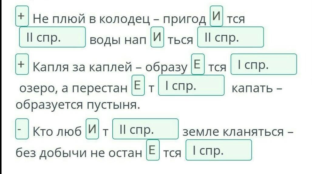 «-» те, которые не подходят. Вставь пропущенные буквы в окончания глаголов. Определи их