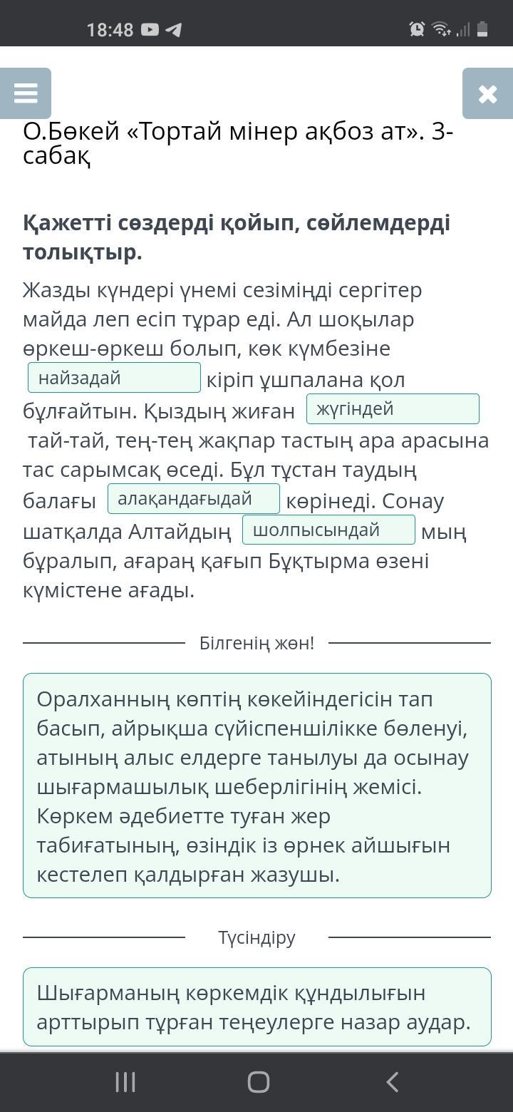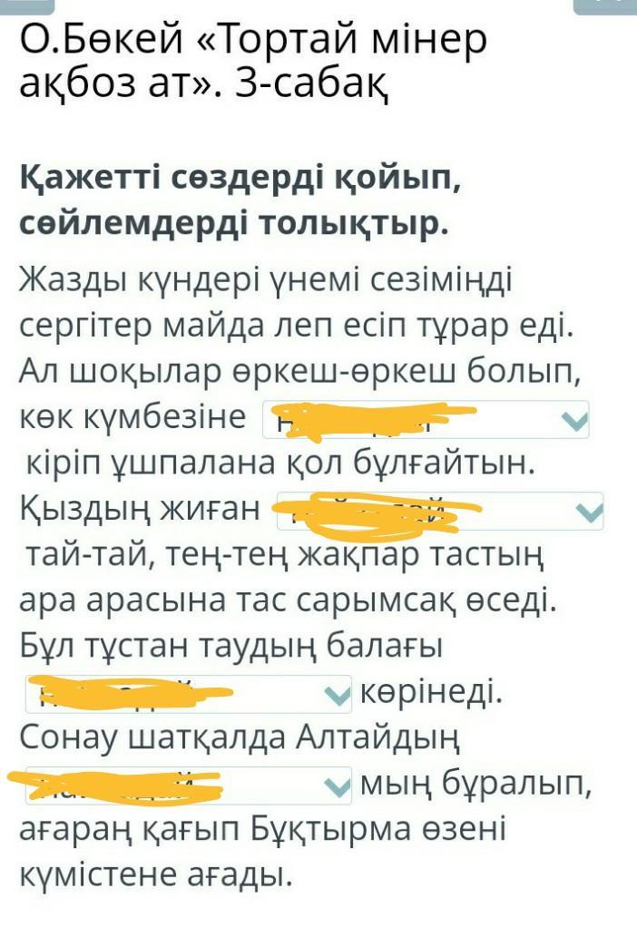 Қажетті сөздерді қойып, сөйлемдерді толықтыр.
