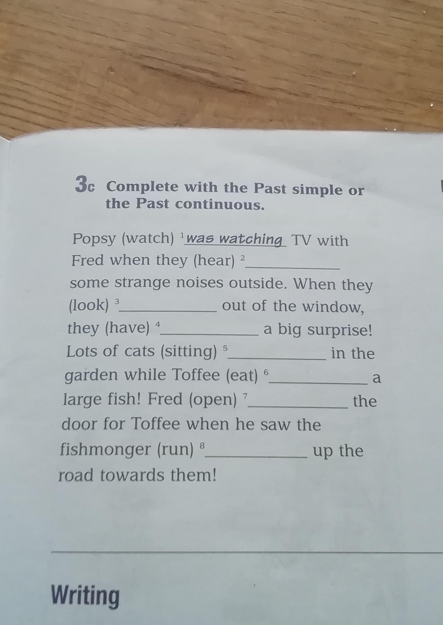 heard,looked,had,were sitting,was eating,opened,was running