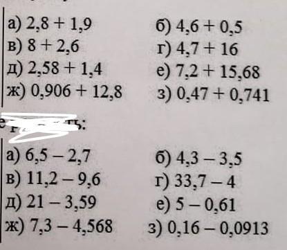 ж)7,3-4,568=2,732 з)0,16-0,0913=0,0687