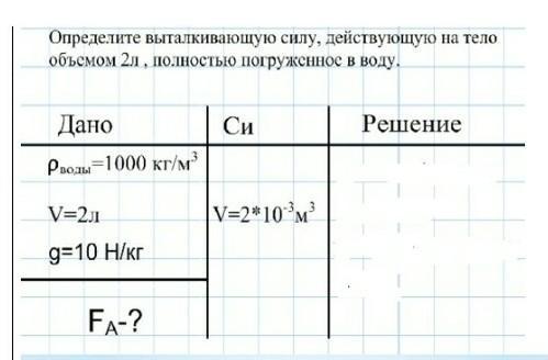 Тело погружено в воду полностью, значит Vп.т. будет равен по условию 2*10^-3 степени