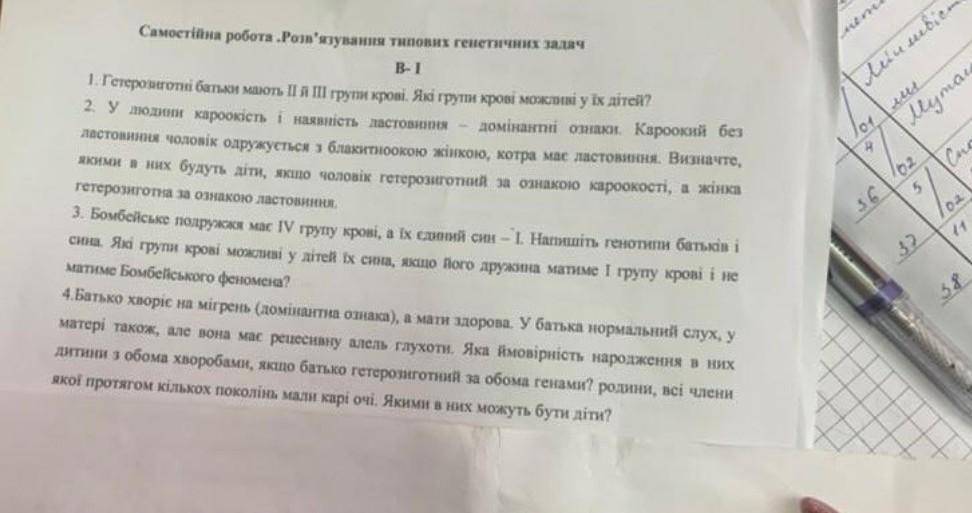 1. Гетерозигота II группы - 0А, III группы - 0В. Значит, дети могут быть 00 - I группа; 0А - вторая; 0В - третья или АВ - четвертая. У детей может быть любая группа крови.