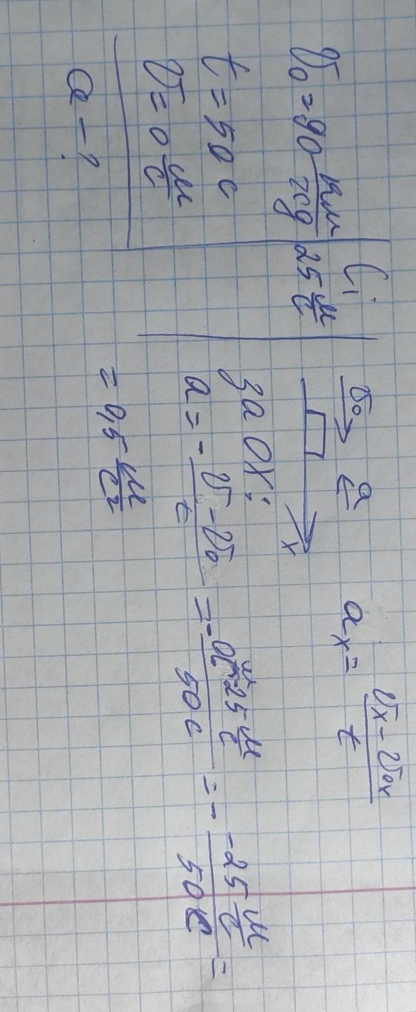 початку гальмування зупинився через 50 с. Визначте прискорення по-