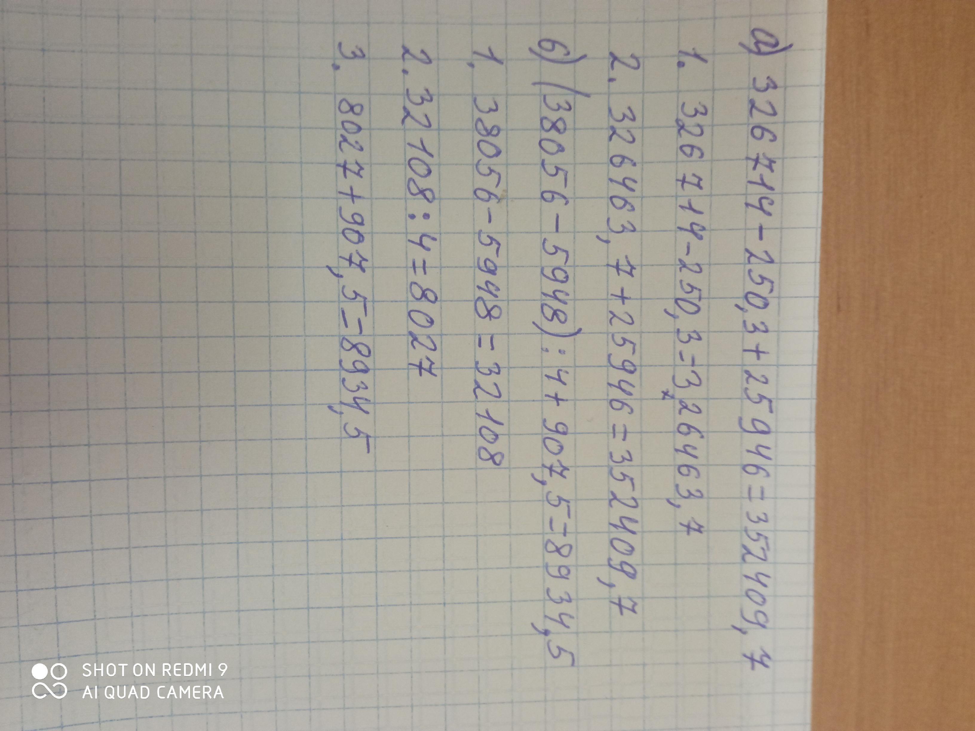 a) 326 714 – 250.3 + 25 946; 6) (38 056 - 5948): 4+ 907.5.