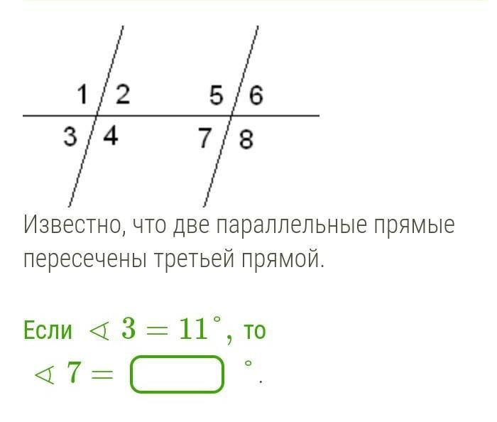 7угол равен 11*градусов так как угол 7 и угол 3 односторонние
