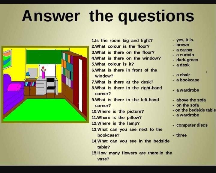 14. I can see computer discs in the bedside table. (There are computer discs in the bedside table. )