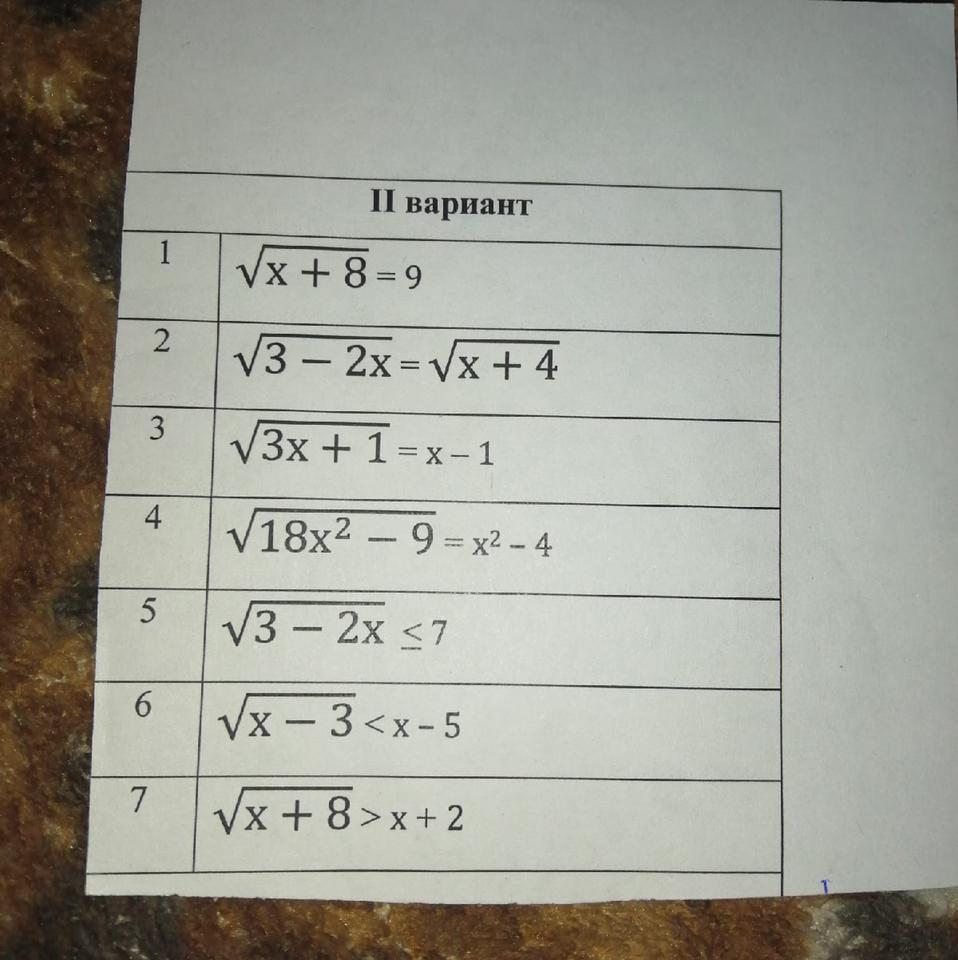 \sqrt{x+8}=9\\(\sqrt{x+8})  ^{2} = 9^{2} \\x+8=81\\x=81-8\\x=73\\\\\sqrt{73+8} = 9\\\sqrt{81}  =9\\9=9\\\\\\\sqrt{3-2x}=\sqrt{x+4}  \\(\sqrt{3-2x})^{2} =(\sqrt{x+4})^{2} \\3-2x=x+4\\-2x-x=4-3\\-3x=1\\x=\frac{1}{-3} \\\\\\\sqrt{3x+1} =x-1\\(\sqrt{3x+1})^{2}  =(x-1)^{2} \\3x+1=x^{2} -2x+1\\x^{2} -2x+1-3x-1=0\\x^{2} -5x=0\\x(x-5)=0\\x_{1}=0\\x_{2}= 5\\\\\sqrt{3*5+1} =5-1\\\sqrt{16} =4\\4=4\\Otvet: 5