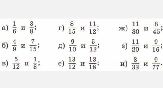 а) 4\24 и 9\24 г) 32\60 и 55\60 ж)33\90 и 16\90
