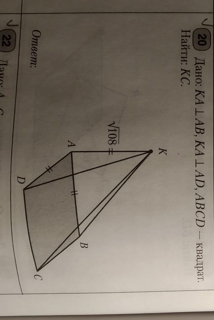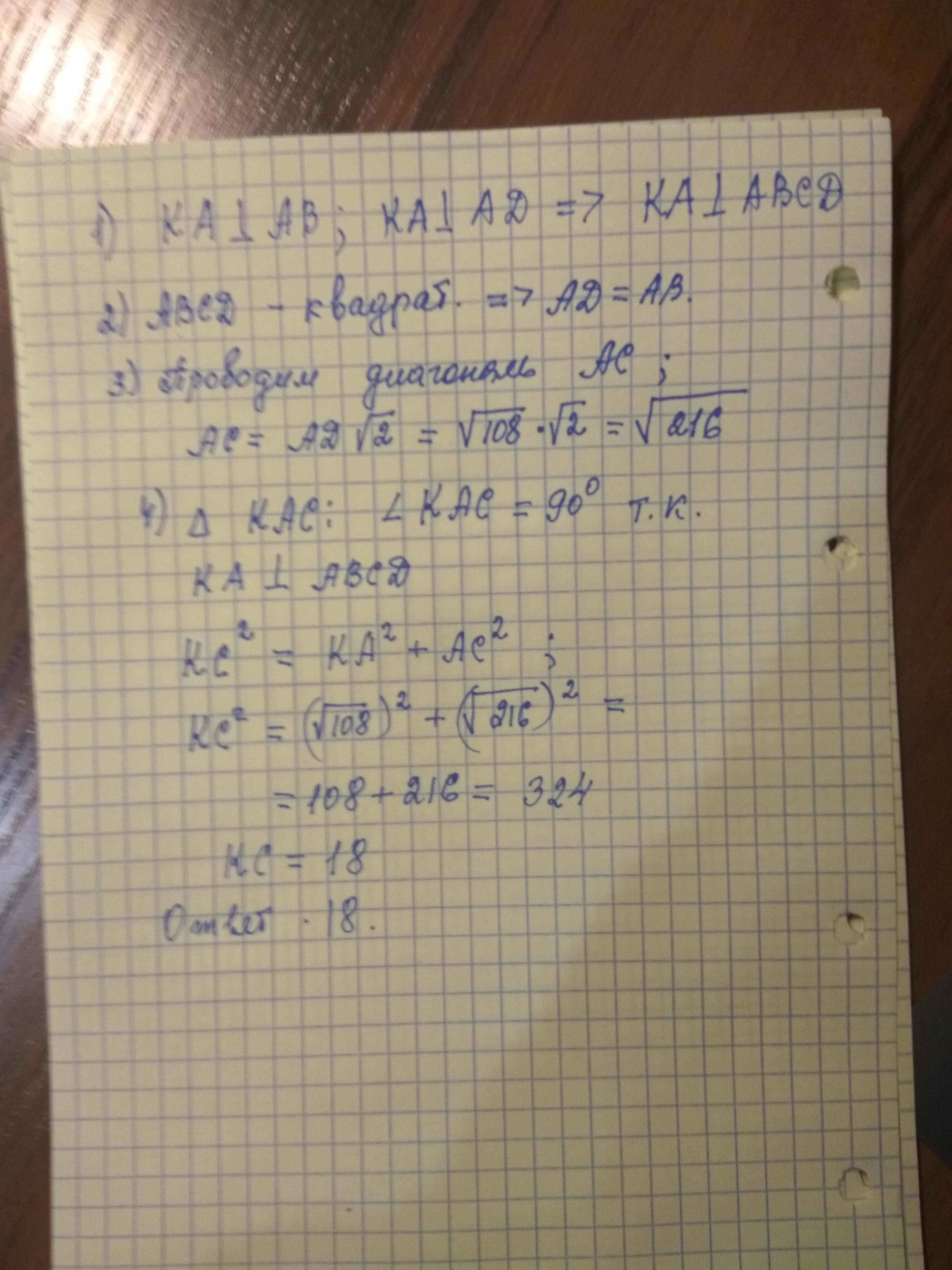 ПОМОГИТЕ ПОЖАЛУЙСТА СРОЧНО !!!KA перпендикулярна AN,KA перпендикулярна AD,ABCD-квадрат.Найти KC