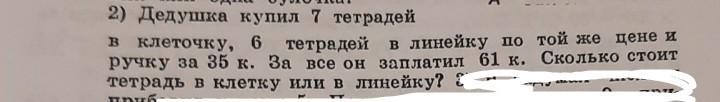 Т.к. тетради в линейку и тетради в клетку стоят одинаково, то пусть х - цена за тетрадь, тогда