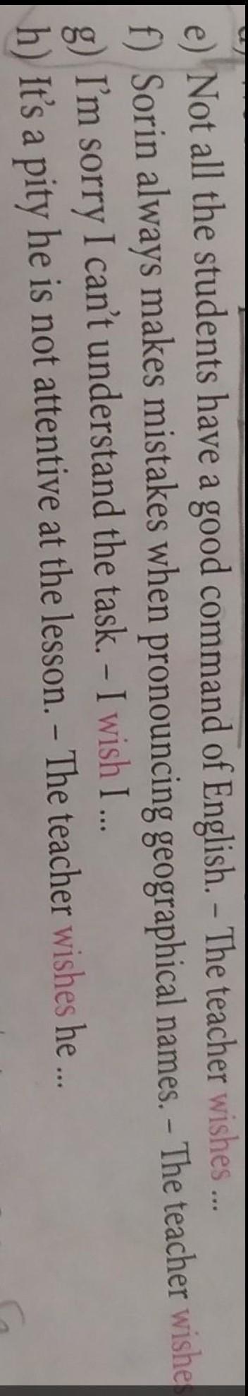 e- all the students had a good command of English f) Sorin never made mistakes. g - I could understand h- he was attentive at the lesson