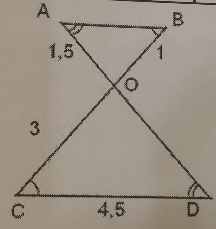 1) Подобны ли треугольники АОВ и DOC?(да, нет).