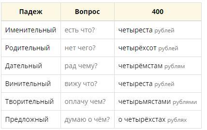 Именительный есть что? четыреста рублей