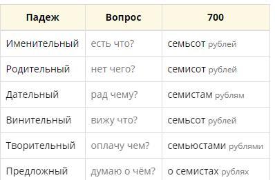 Именительный есть что? семьсот рублей