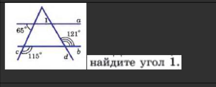 Берем нижнюю паралель b, которую пересекает с, имеем угол 115 градусов, значит смежный угол 180-115= 65.