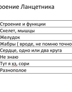 Нужно заполнить таблицу(прикрепил), Даю 50 баллов, Внешнее и внутреннее строение Ланцетника