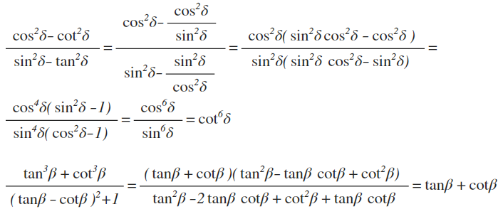 1)(cos²b*sin²b-cos²b)/sin²b :(sin²b*cos²b-sin²b)/cos²b= cos²b(sin²b-1)/sin²b : sin²b(cos²b-1)/cos²b=cos²b*(-cos²b)/sin²b : sin²b*(-sin²b)*cos²b= -cos^4b/sin²b : -sin^4b/cos²b=cos^4b/sin²b*cos²b/sin^4b=cos^6b/sin^6b=ctg^6b