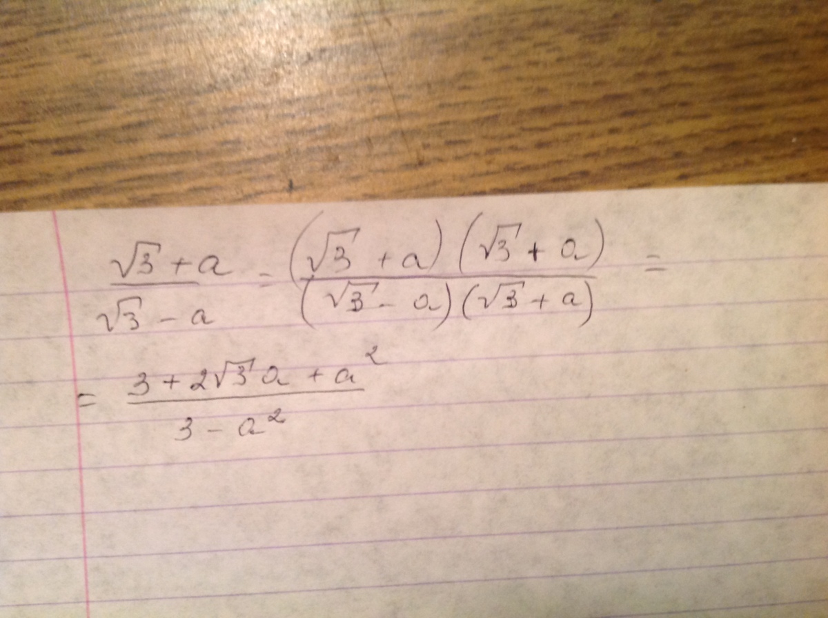 всю дробь домножить на корень из трех -а. тогда в числителе получится