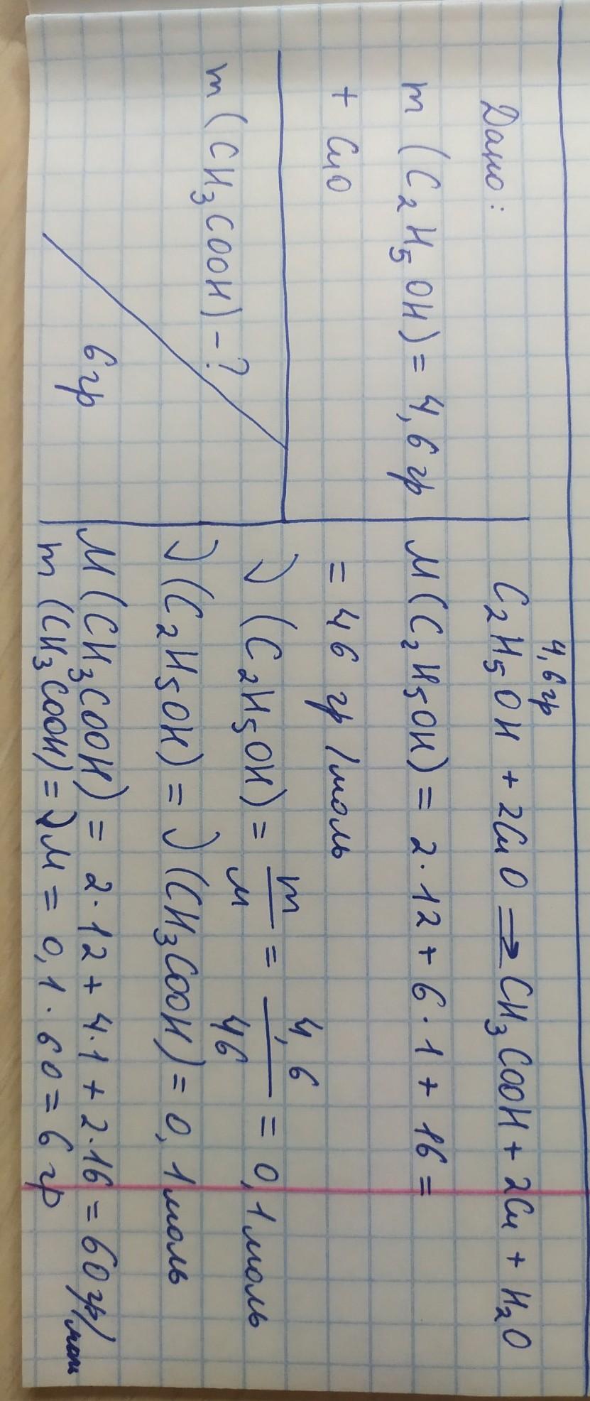 яка речовина і в якій кількості утворюється в результаті окиснення 4,6г етанолу з купрум 2 оксидом? очень надо !!! на завтра