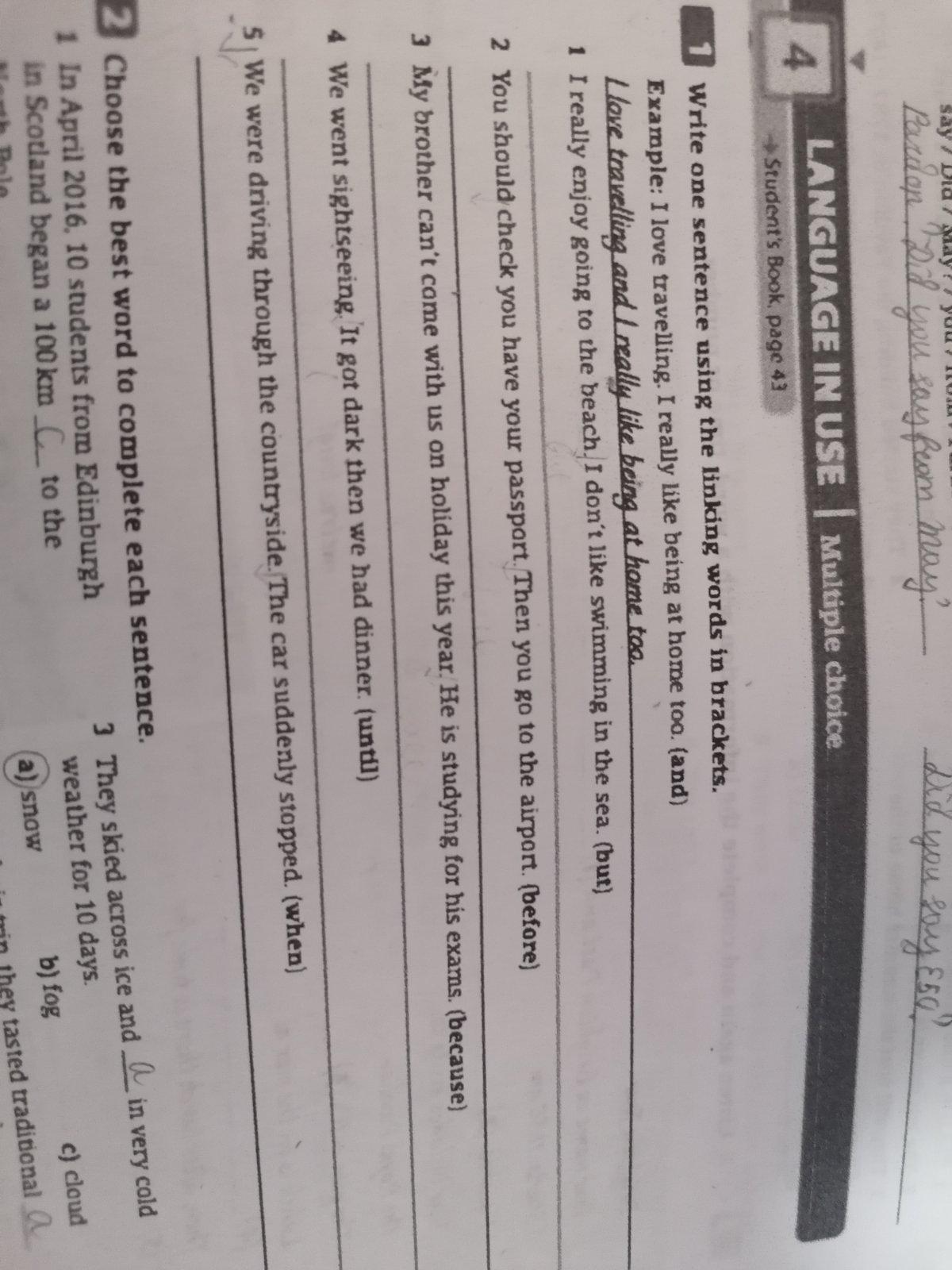 3. my brother can't come with us on holiday, because he is studying for his exams.