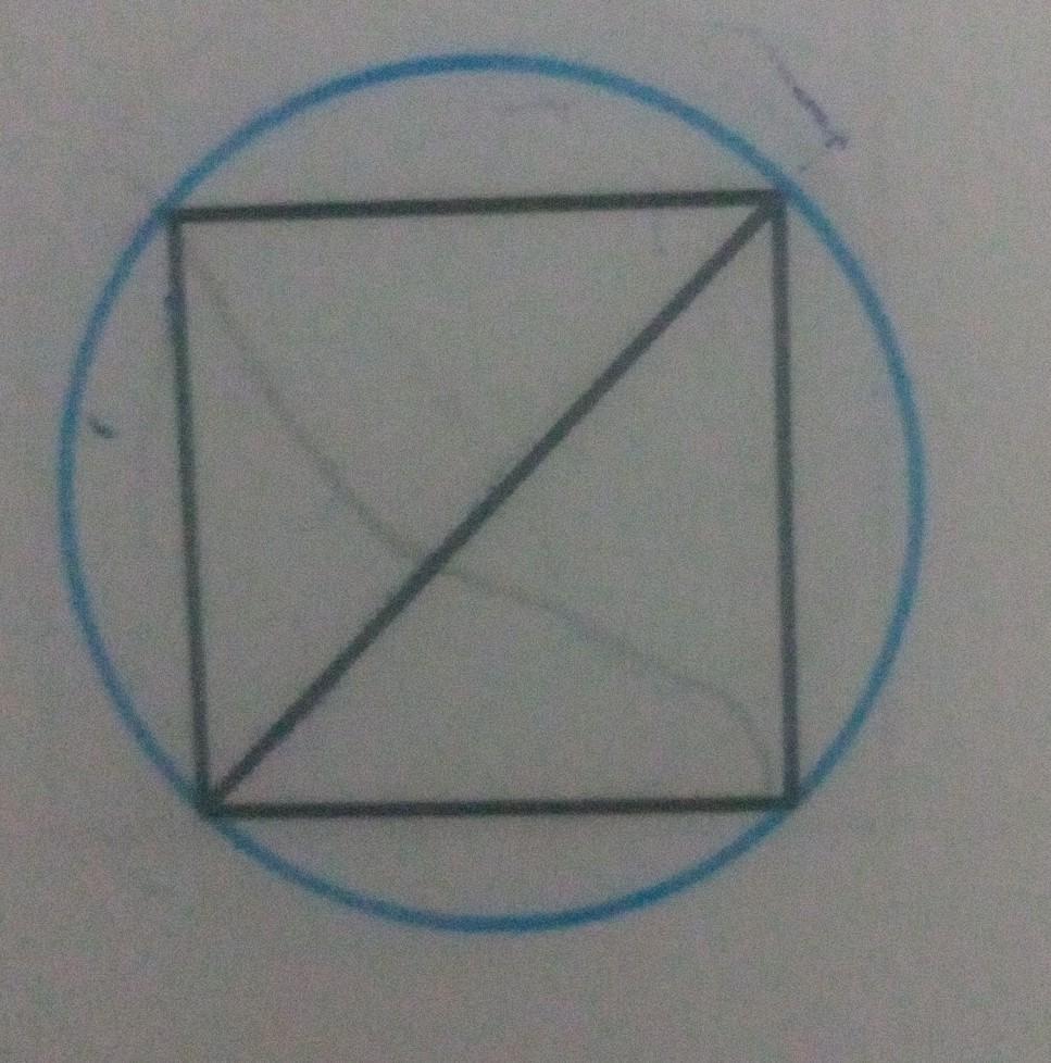 Диаметр круга равен данной диагонали, что видно из рисунка и легко доказать.Не знаю как в 6-м классе, но проще всего из того факта, что все вершины квадрата удалены от центра на половину диагонали.