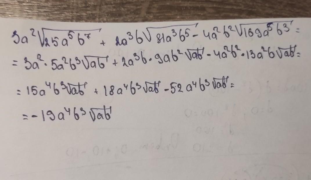 -19 а⁴ б³ √аб (вроде бы решается так)
